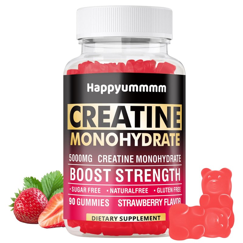 Happyummmm Creatine Monohydrate Gummies 5000mg for Men & Women, Chewables Creatine Monohydrate for Muscle Strength, Muscle Builder, Energy Boost, Pre-Workout Supplement(90 Count)-Strawberry