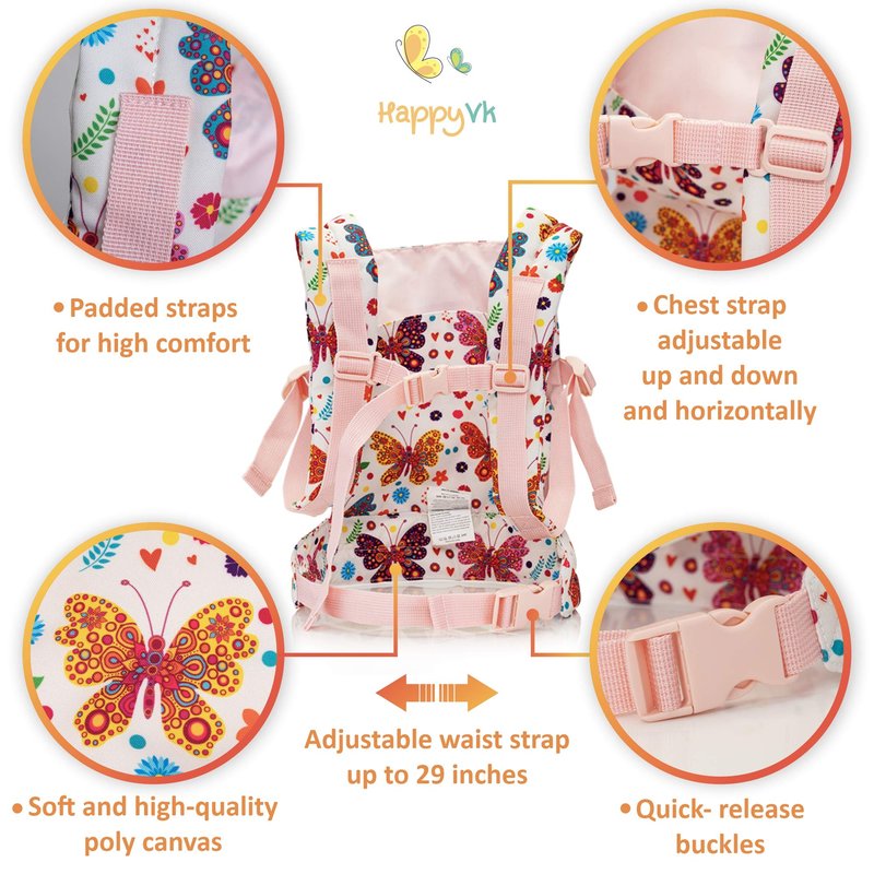 HappyVk Baby Doll Carrier Toy Doll Carrier Front Back for little girls Doll Accessories Butterfly