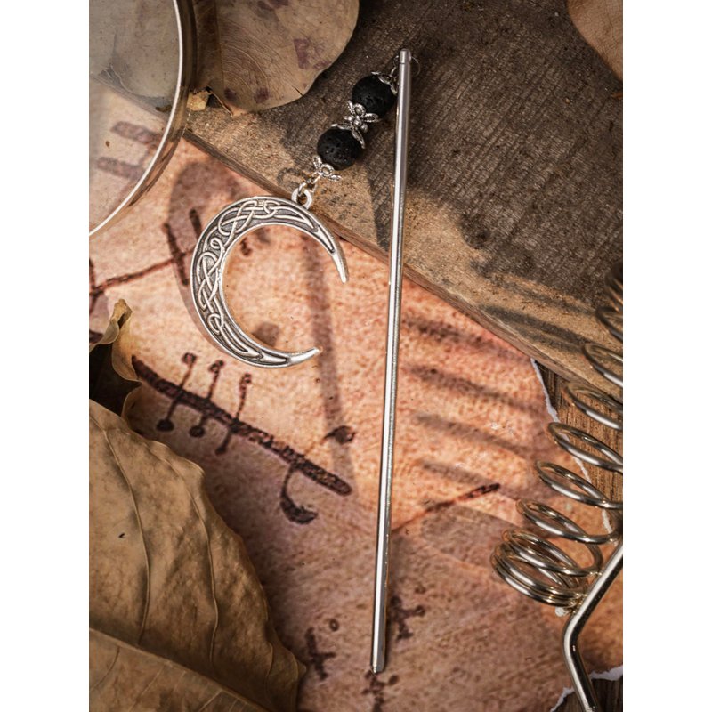 - CRESCENT MOON HAIRSTICK: This item is a trendy and fashionable accessory that is sure to add a touch of elegance to your hairstyle. This hairpin is made of high-quality materials, ensuring durability and long-lasting use. It is designed in a snake sword shape, which adds a unique and stylish touch to your hairstyle.
