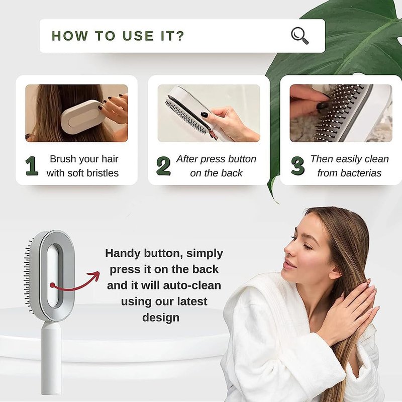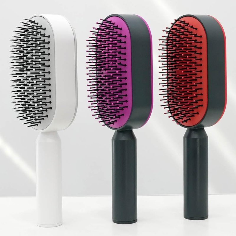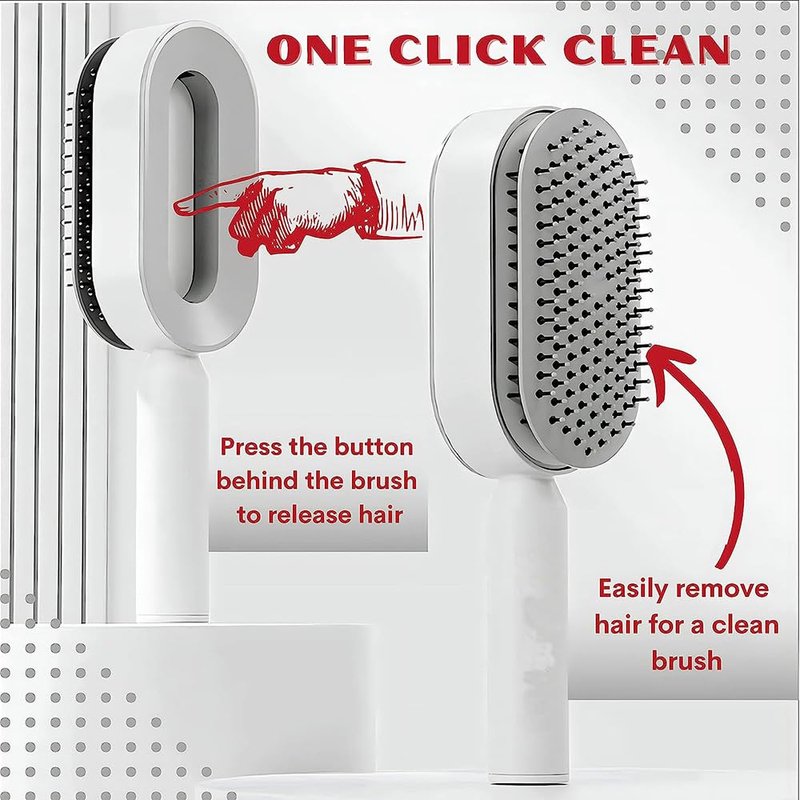 "Experience the next level of hair care with our innovative 3D Detangling Hair Brush featuring cutting-edge One-Click Technology. Say goodbye to frustrating knots and tangles as this brush effortlessly glides through your hair, leaving it smooth, sleek, and tangle-free. Our unique One-Click Technology allows for quick and easy removal of trapped hair from the brush with just a simple click, making cleanup a breeze. No more digging or pulling hair out of your brush - simply click and continue styling! Designed with precision-engineered 3D bristles, this brush gently massages the scalp while effectively detangling hair without causing breakage or damage. Whether you have thick, curly, or straight hair, this brush is suitable for all hair types and textures. Ergonomically designed for comfortable grip and control, this brush is a must-have addition to your hair care routine. Say hello to smoother, healthier-l