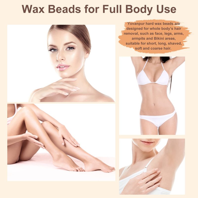 - Hard Wax Beads for Brazilian Waxing: Yovanpur wax beans are strong enough to tackle thick hair, yet gentle and effective on soft hair. Tidy up brows to bikini line in one quick waxing session with our multi-use formula. Safe and effective, Perfect wax pearls painless hair removal for your entire body: face, arms, legs, chest, back, and bikini