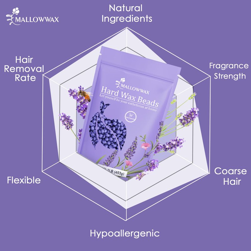- ✡️Soothing Lavender Formula - Our lavender wax beads for hair removal are made from fresh, high-quality lavender sourced from South East England, preserving its skin-soothing properties. Gentle and effective, Mallowwax formula is a natural choice for hair removal.