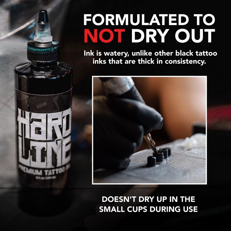 Take your heavy black tattoo creations to the next level with Hardline Premium Black Tattoo Ink!
