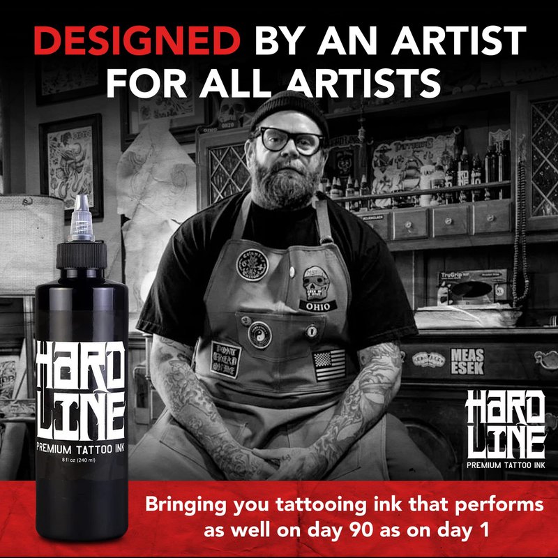 - Artist-approved - The renowned tattoo artist BIG MEAS loves using our black ink on his heavy black tattoo creations. Hardline is your source for high-quality tattoo inks that provide consistent performance from day one and beyond.