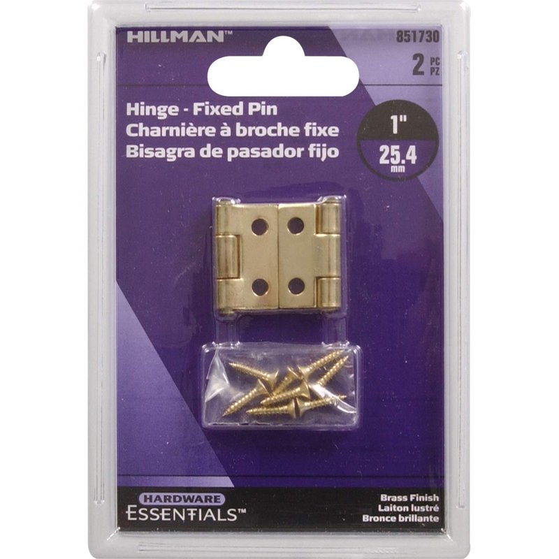 Hardware Essentials 851730 Light Narrow Door Hinges and Fixed Pin Brass 1" -2 pack