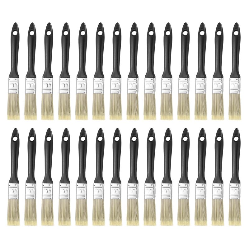 HARFINGTON 28pcs Flat Paint Brush 1" Reusable Plastic Grip Metal Ferrule Synthetic Bristle Paintbrushes for Wall Cabinet Decks Fences Interior Exterior Painting