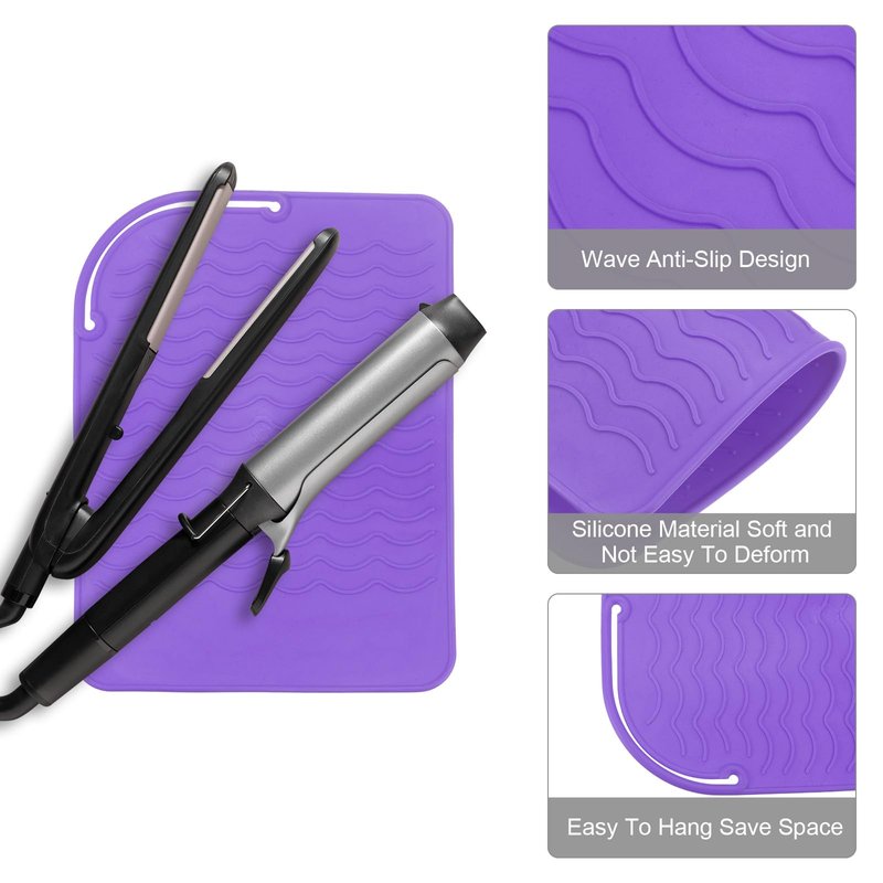 - Size - Color: Purple; Size: 21 x 15.5cm/ 8.27 x 6.1-inch; Thickness: 3mm / 0.12-inch; 3 x Silicone Iron Hair Curling Pads