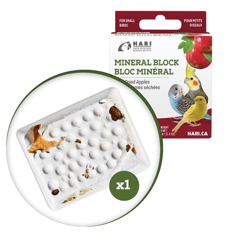 Hari Mineral Block for Birds with Dried Apples, Calcium Supplement Bird Treat