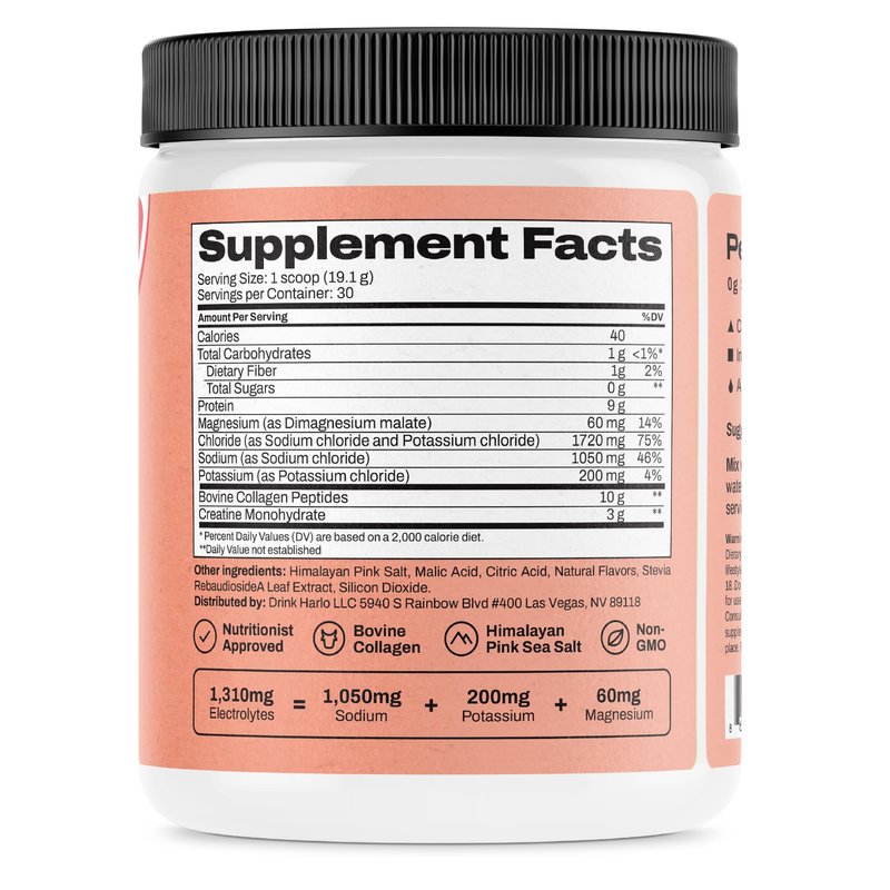 Introducing Harlo: the ultimate powdered drink supplement designed to elevate your wellness and workout routine. Crafted with precision, Harlo's innovative blend combines essential electrolytes, high-quality collagen, and pure creatine to offer a zero-sugar formula that's your perfect fitness ally. Say goodbye to artificial additives – Harlo features clean ingredients that are gluten-free, paleo, and keto-friendly, ensuring you get only the best for your body.