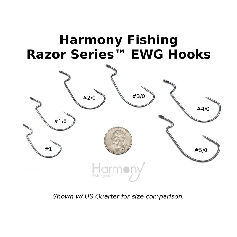 - Harmony Fishing Company's Razor Series EWG hooks are chemically sharpened for an unbelievably sharp point for consistent, reliable penetration. Utilizing a proprietary high carbon steel alloy, these hooks are strong enough not to bend out while landing a fish, while avoiding being brittle, so they will not snap or shear off under pressure.
