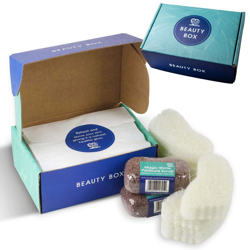 - Never run out of foot care products! This Box provides you with 6 Foot Scrub Sponges & 2 Magic-Stone Pedicure Stones to make your feet smooth & beautiful; the perfect gift for you and your loved ones