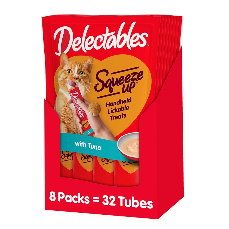 - CONTAINS: This pack of Delectables Squeeze Ups contains 32 (0.5 ounce eaches) squeezable cat treat tubes.