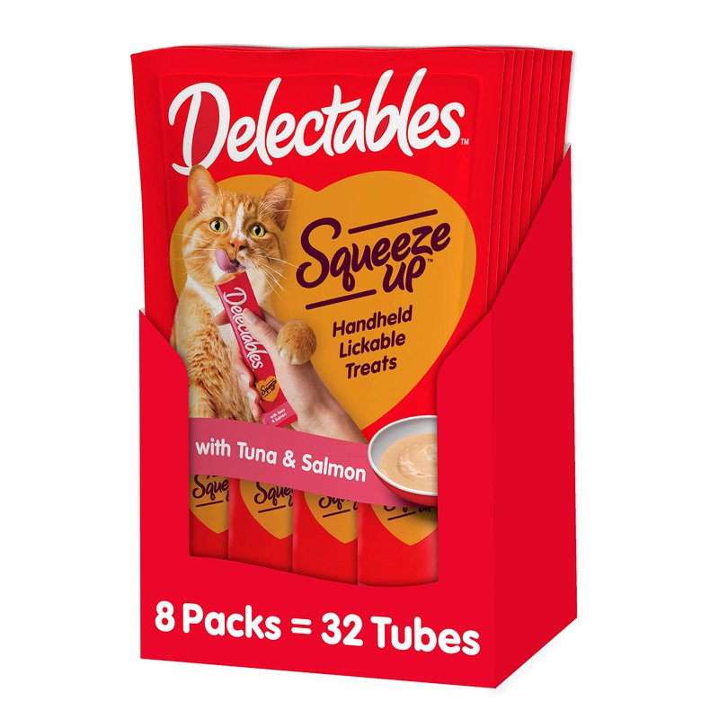 Hartz Delectables Squeeze Up Interactive Lickable Wet Cat Treats for Adult & Senior Cats, Tuna & Salmon, 4 Count(Pack of 8)