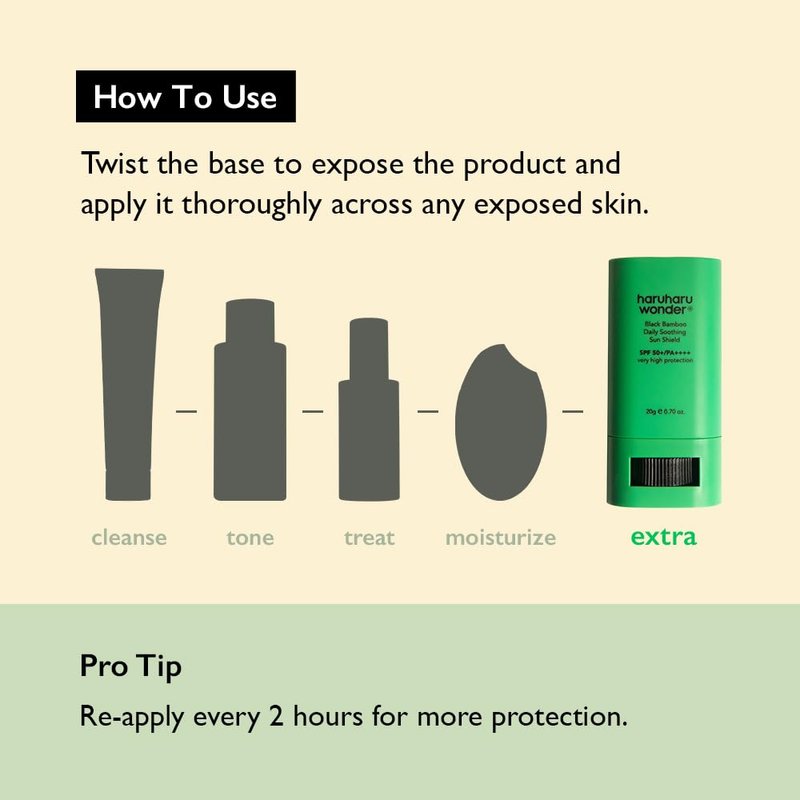 - How to use: 1. At the last step of your skincare routine, twist the base to expose about 0.5cm of the stick and swipe it thoroughly across any exposed skin, like face, neck and shoulder. 2. Carry around this portable sun stick with you and reapply every 2 hours for optimal protection.