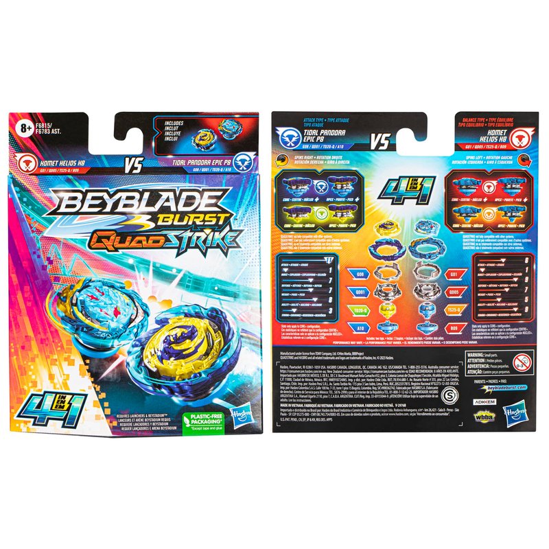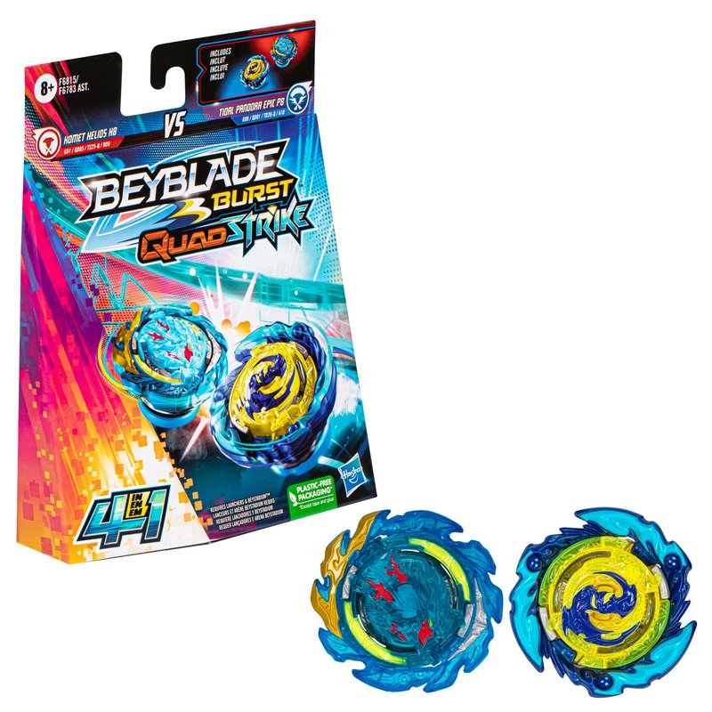 Hasbro Beyblade Burst QuadStrike Komet Helios H8 and Tidal Pandora Epic P8 Spinning Top Dual Pack, 2 Battling Game Top Toy for Kids Ages 8 and Up