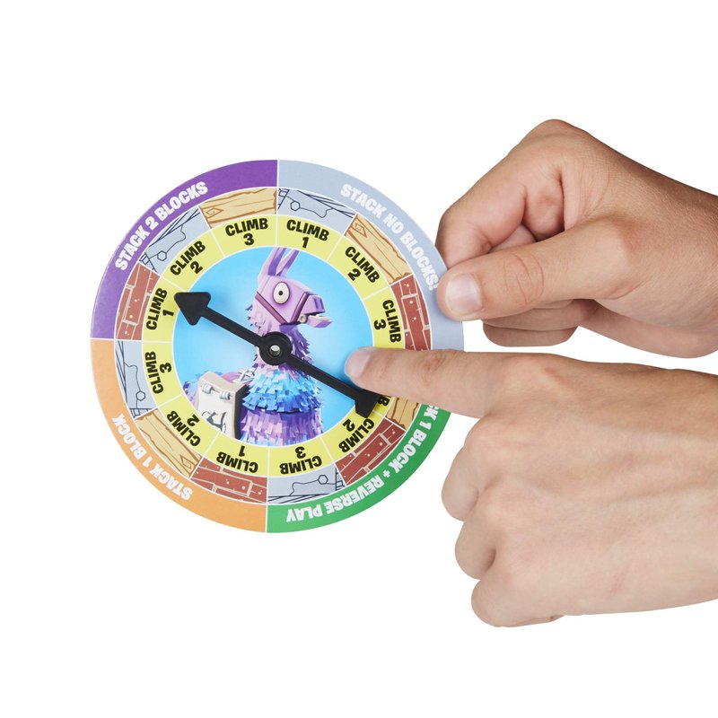 - Spin, stack, climb: Players spin the spinner and follow the commands: the number and type of Blocks to stack, and how many layers their Fortnite character must climb