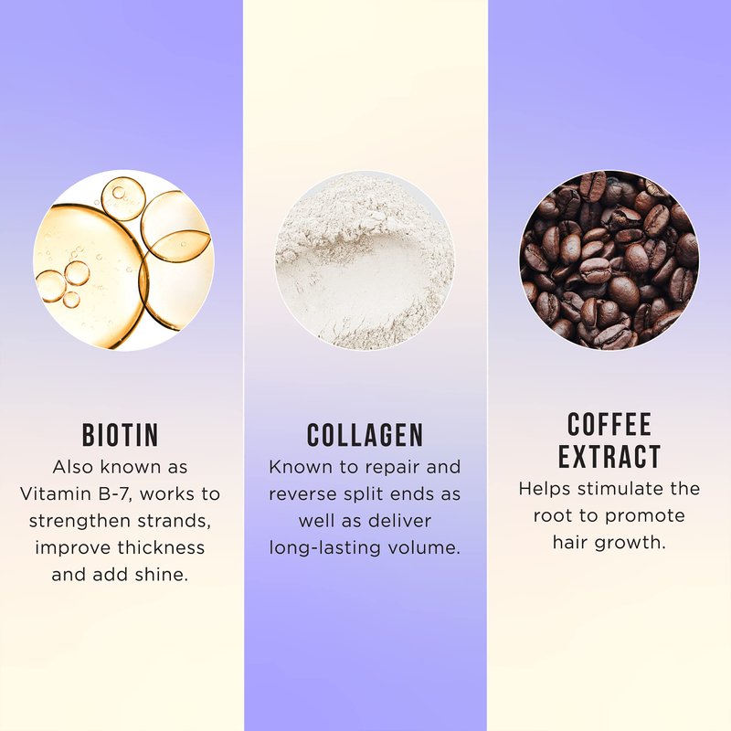 - Featuring Tri-level Thickening Complex with Biotin, Collagen & Coffee to Volumize, Strengthen & Fortify Hair