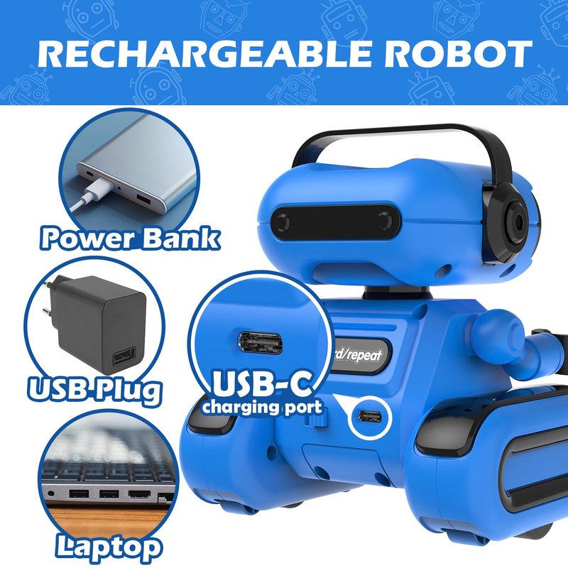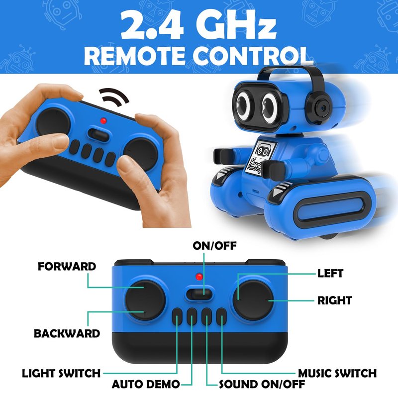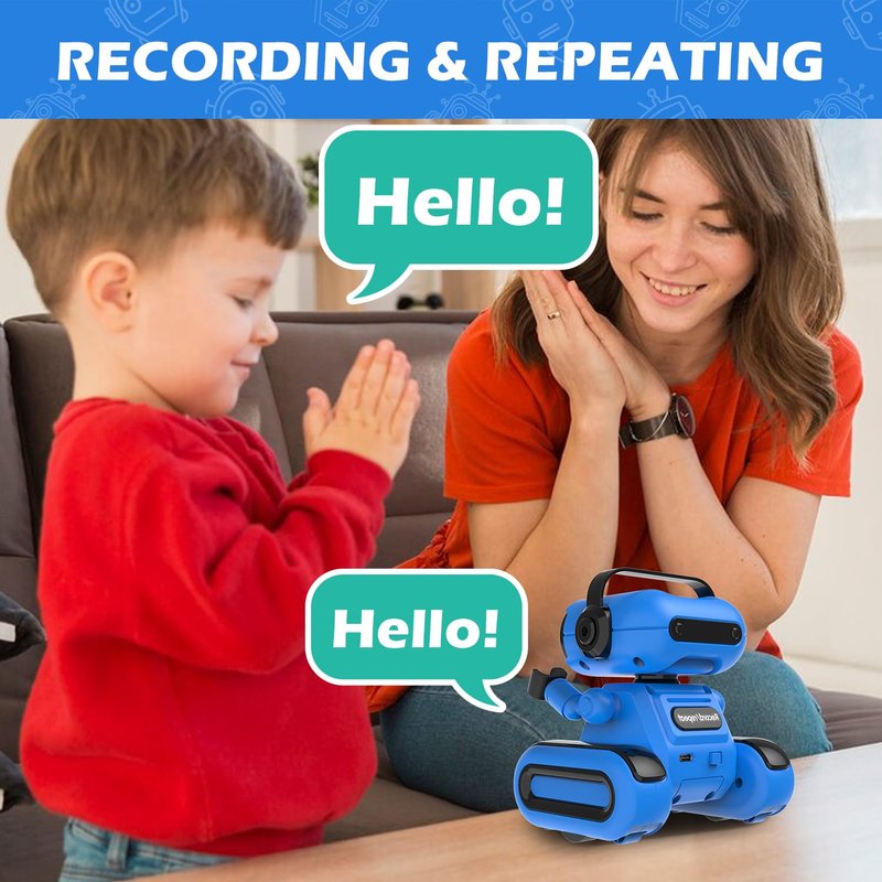 - Recording & Repeat Mode: Press and hold the recording button, and the boys robot can record audio for up to 15 seconds, satisfy your kid's curiosity and provide a pleasant recording and repeating experience for your kids