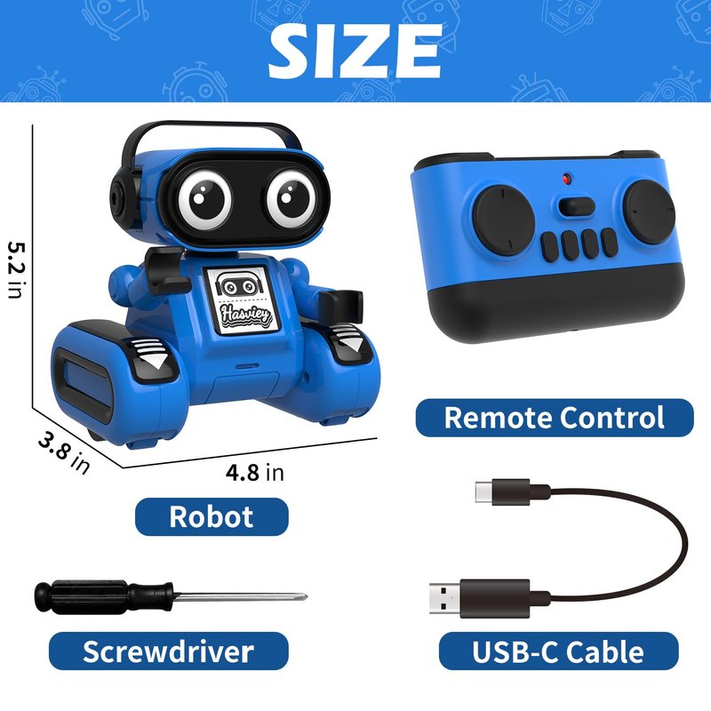 - What You Get: Hasviey remote-controlled robot, remote control, USB-C cable, screwdriver, user manual, twelve-month worry-free warranty and friendly customer service