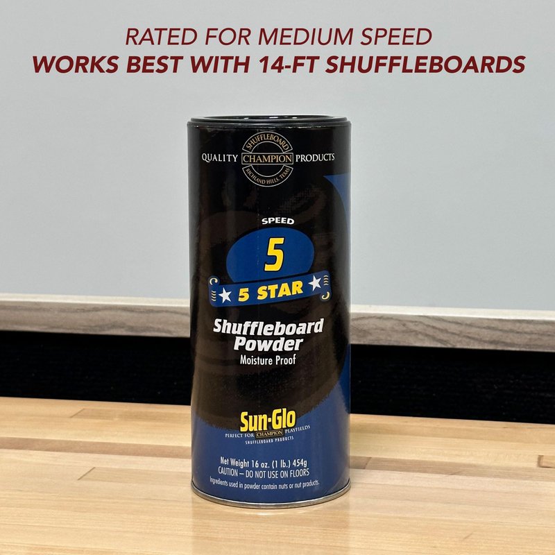 - RELIABLE GAME PLAY - Create the kind of game you prefer. Rated for medium-speed, Sun-Glo Shuffleboard Powder gives you more control and consistency every time you slide a puck.