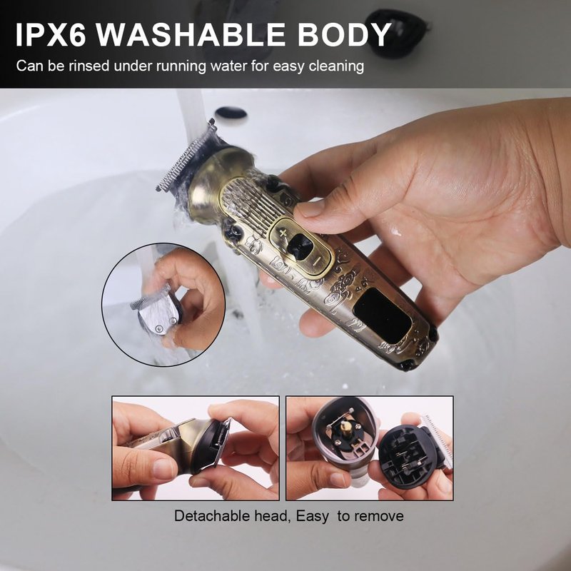 - 【Entire Body Washable】 The Beard Trimmer body adopted IPX6 waterproof design with the removable cutter heads for easy cleaning under running water. For longer use, please dry it after cleaning.