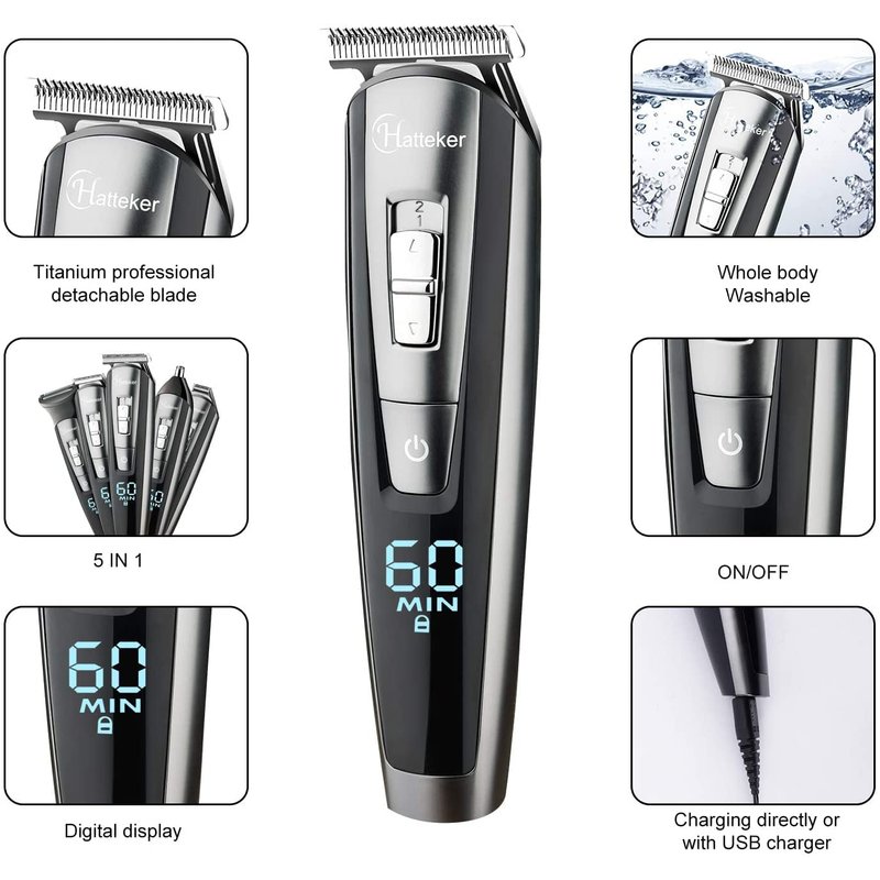 Hatteker Hair Clipper Beard Trimmer Kit for Men Cordless Hair Mustache Trimmer Hair Cutting Groomer Kit Precision Trimmer Waterproof USB Rechargeable 5 in 1