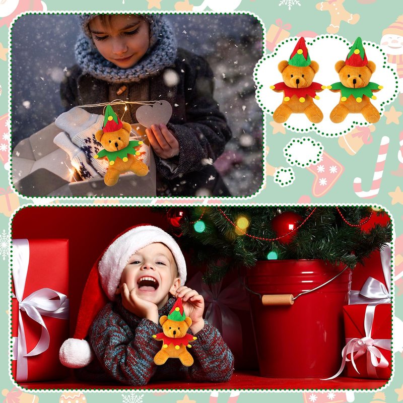 - Christmas Celebration Companion: the Christmas stuffed plush bears goes beyond your regular festive decorations; Acting as your cute celebration companion, the elf stuffed bears lighten up the room, office, or bedroom with their warming presence; This set becomes an integral part in creating a friendly and cozy Christmas atmosphere