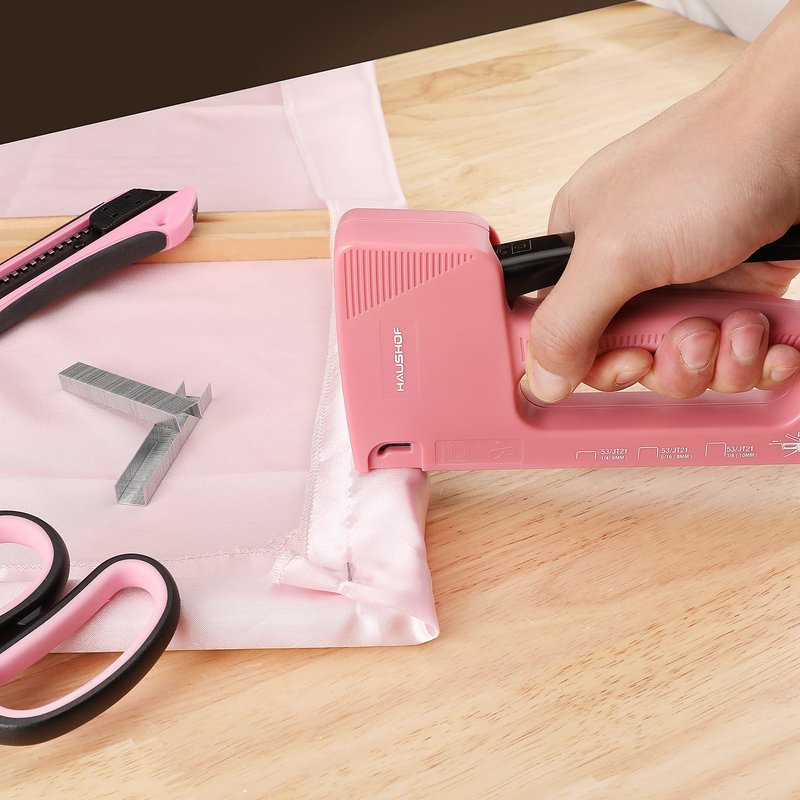 HAUSHOF Light Duty Staple Gun, Upholstery Staple Gun with 800PCS JT21 Staples and Stapler Remover, Pink Staple Gun Kit fits JT21 Staple of 1/4'', 5/16'' & 3/8'' for Classroom, Crafts, DIY, Decoration