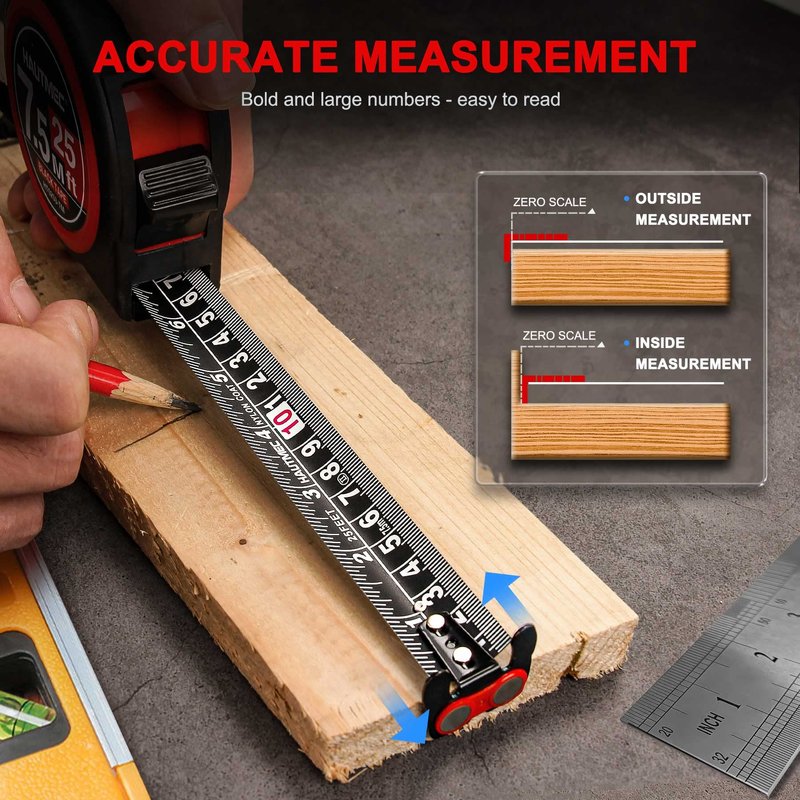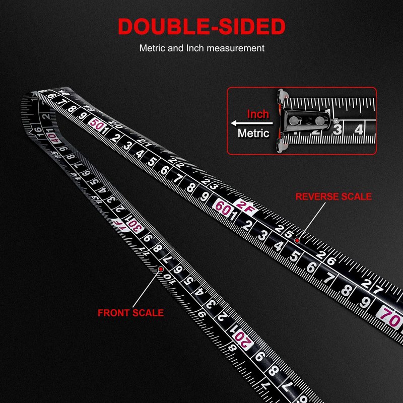 - MAGNETIC HOOK:The magnets are strong enough to pick up metal tool and greatly enhances the stability of the blade, especially when single person measuring long distance
