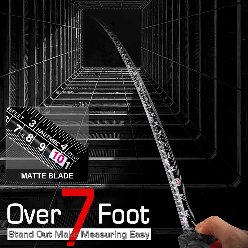 - HEAVY DUTY: Special extreme rigid thick black steel blade with nylon coated in 25 mm width, 0.15 mm thickness makes it strong and durable and can horizontally stand out till 7ft. Highly precise and useful for engineer,homeowners, professional handymen, carpenters, metal or wood workers,architects,etc