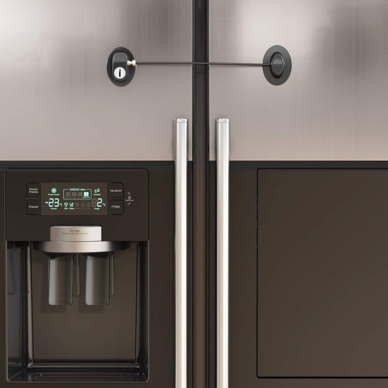 - VERSATILE SECURITY LOCK: Our multipurpose fridge locks for kids is not only ideal for freezer and fridge but works great as cabinet lock, printer tray lock, oven lock, and tool chest lock; can be used on side by side refrigerators and drawers