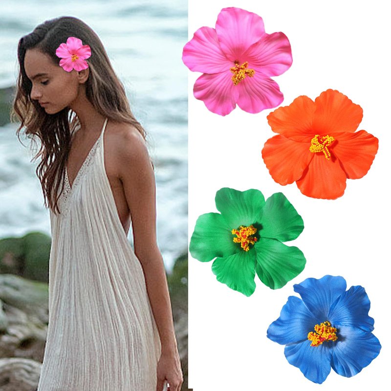 Hawaiian Flower Hair Clips for Women Pink & Orange & Green & Blue Hair Clip Fashion Artificial Flower Clips Summer Hair Accessories for Vacation Beach Party 4PCS