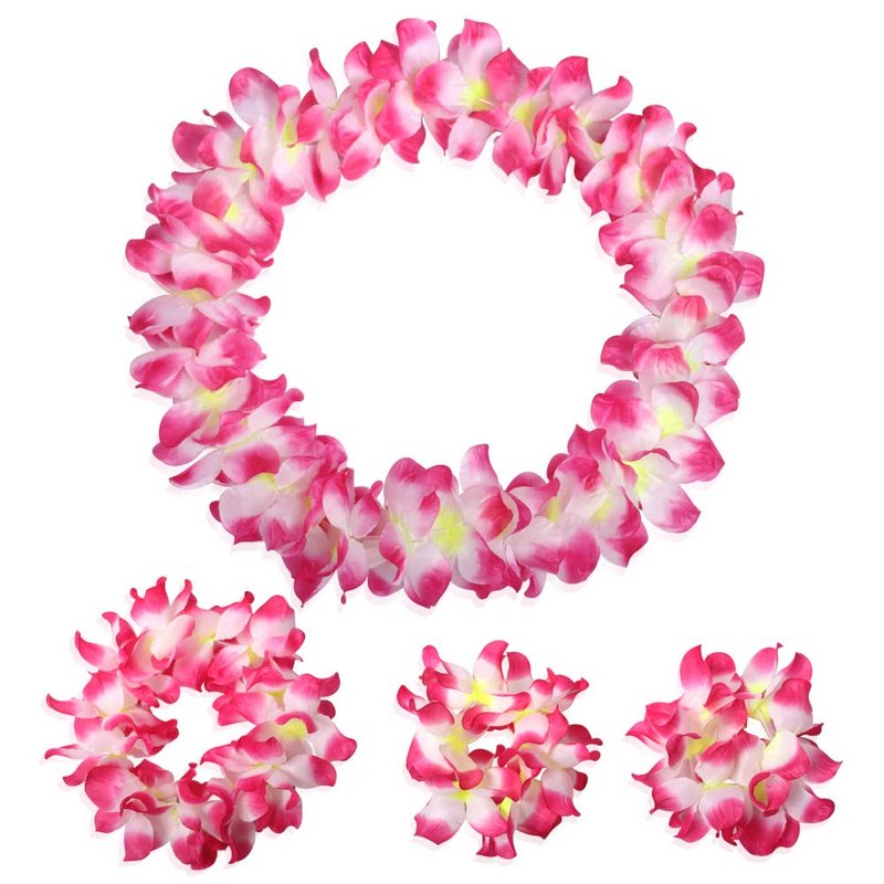 - 【HIGH QUALITY】 Excellent handmade soft materials and exquisite workmanship, hand-crafted carefully down to every detail to give a stunning, magical, sexy, lovely chic look. It is made of high quality eco-friendly smooth shiny plastic, package: 2 pack headband + 2 pack leis necklace + 4 pack braceklets, approximately circumference for necklace is 41.3", for headband is 16.5", for bracelet is 7.9". What are you still waiting for? just add it to your cart and enjoy it with your friends and family