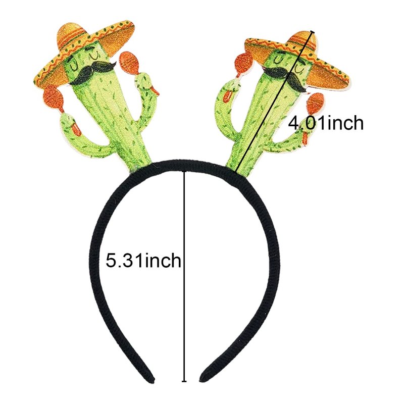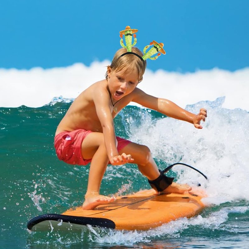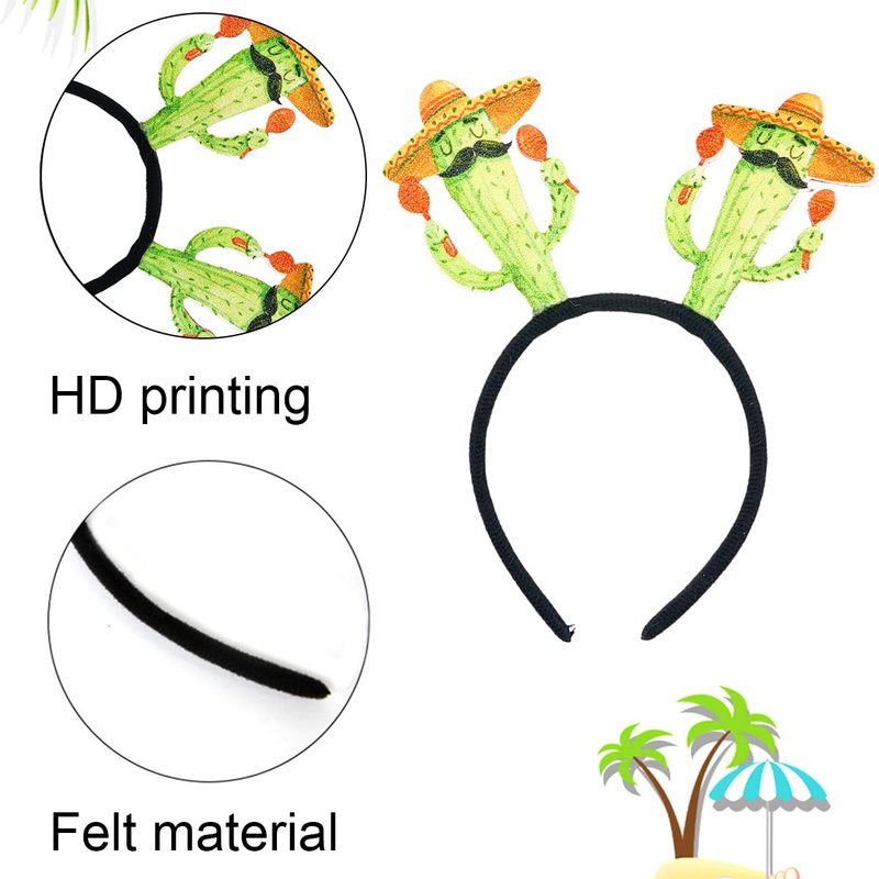 - Hawaiian Head Decoration: The hair hoop is decorated with two cartoon humanoid cacti, which wear a straw hats. It looks so cute and funny.