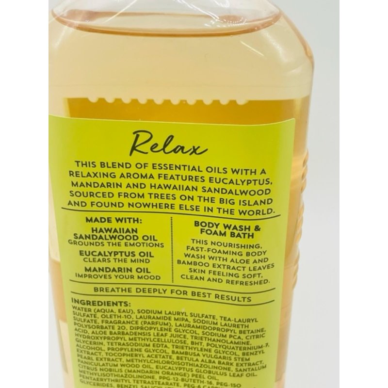 Hawaiian Sandalwood + Eucalyptus + Mandarin Aromatherapy Relax Foam Bath Body Wash 10 Ounce Full Size Bottle