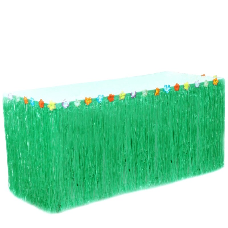 Hawaiian Table Skirt 11ft Long Stretches to 30ft! | (29" Tall) Green Hibiscus Luau Party Decoration | Tropical Theme Decor (1 Table Skirt)