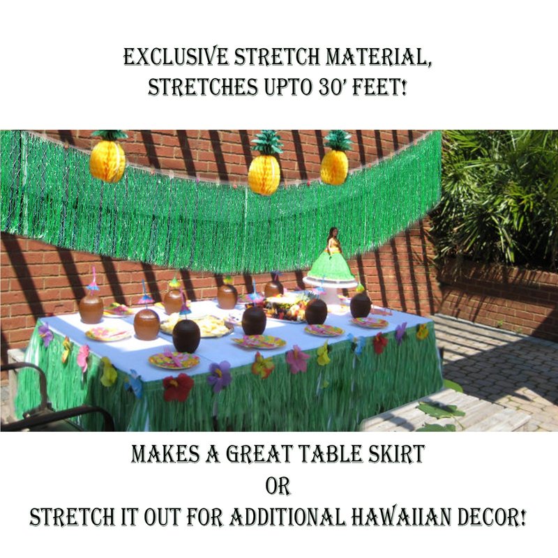 - EXCLUSIVE STRETCH DESIGN – 11ft becomes 30ft! With our stretch design you can cover up multiple tables with just one skirt. Perfect for large display tables. You can also stretch them and hang them up for added Hawaiian décor. This exclusive design is sure to add more value and options to your purchase.