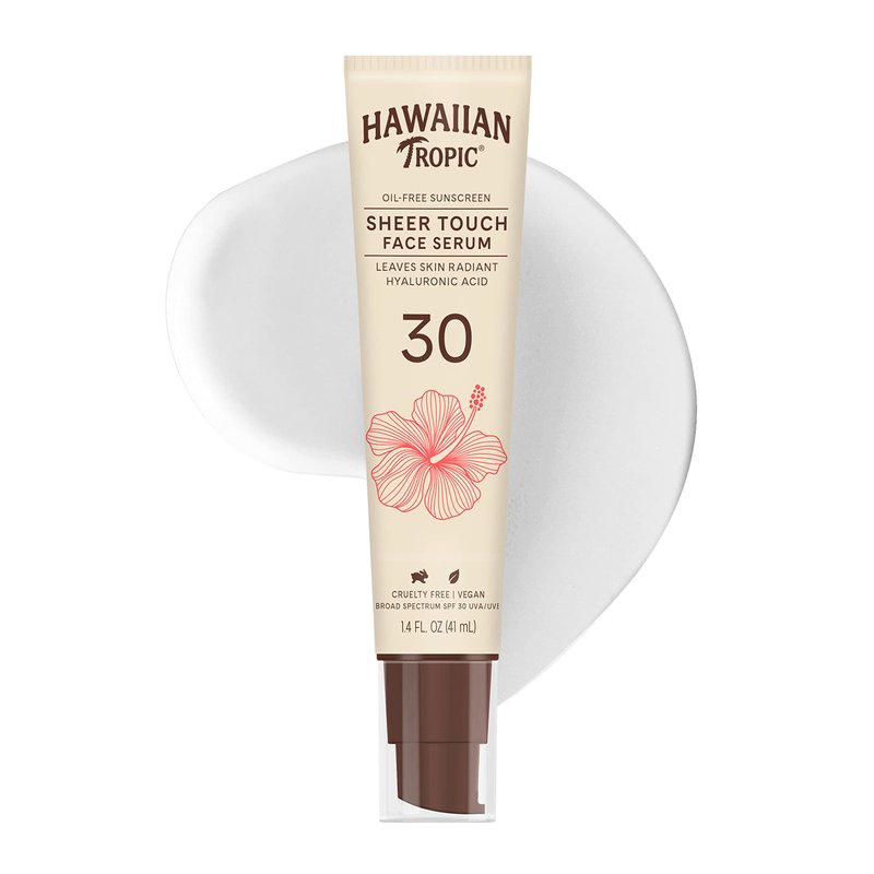Hawaiian Tropic Sheer Touch Face Serum SPF 30, 1.4oz | Hyaluronic Acid Hydrating Serum For Women and Men | Travel Sunscreen