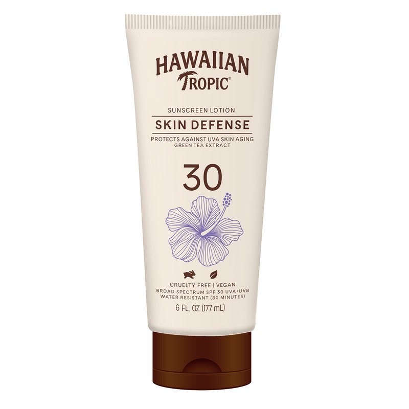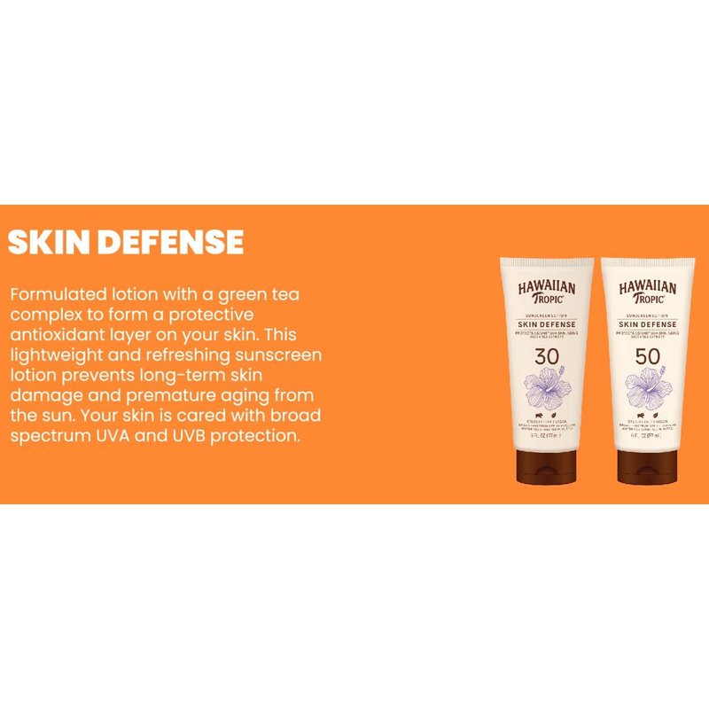 Hawaiian Tropic Skin Defense Sunscreen Lotion SPF 30, 6oz | SPF 30 Sunscreen Lotion with Green Tea Extract, Sunscreen Body Lotion, Oxybenzone Free Sunscreen, 6oz