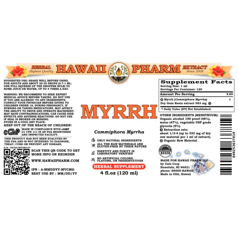 HawaiiPharm Myrrh (Commiphora myrrha) Liquid Extract, Myrrh Herbal Supplement, Made in USA 4x4 fl.oz