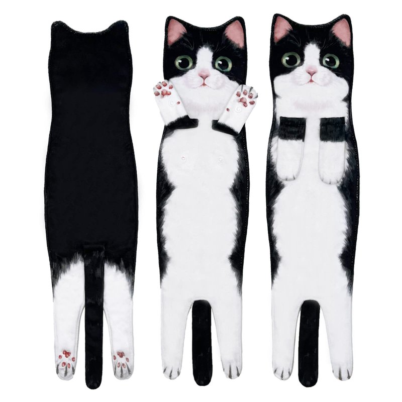- Cat Hand Towel: This fun kitten towel perfectly blends the cute shape of a kitten with a hand towel. The kitten's paw has a snap design, so it can be hung securely on the towel rack. When hanging from the towel rack, the kitten hand towel can remain upright, maintaining its fun and cute appearance. After washing your hands, you won’t be able to resist wiping them on this adorable kitten hand towel. Stroking this soft towel not only dries your hands, it also can help improve your mood.