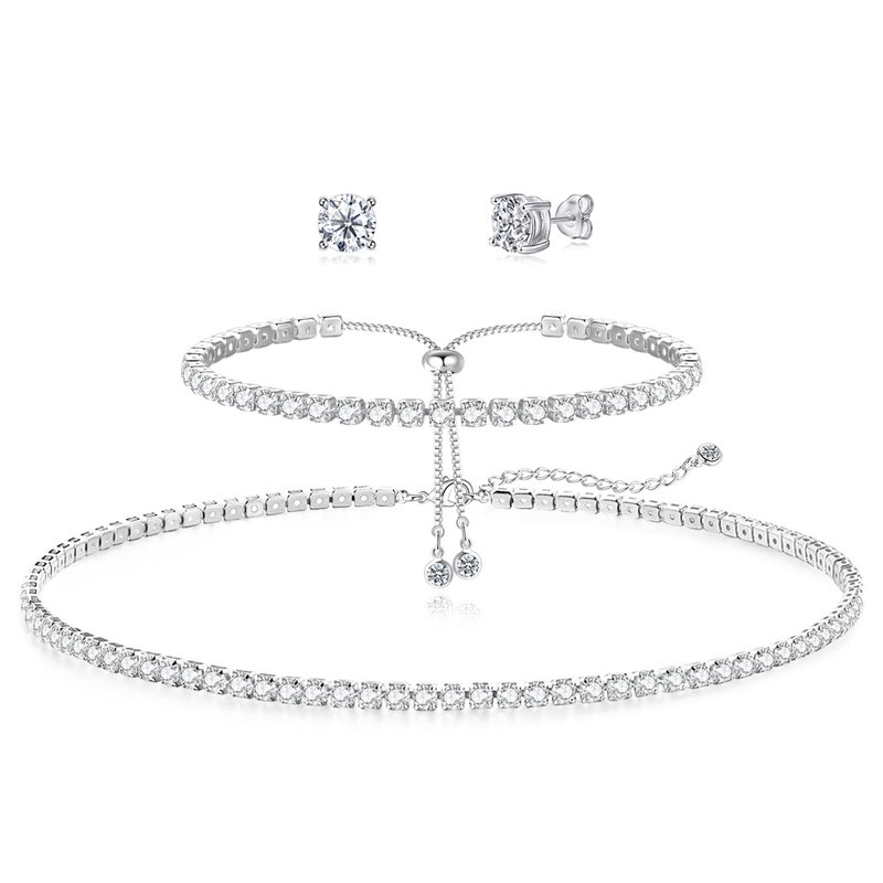 HAXIYA Tennis Necklace Set for Women Crystal Bracelet Diamond Earrings Wedding Jewelry for Bride Sterling Silver Jewelry Sets Pack of 3