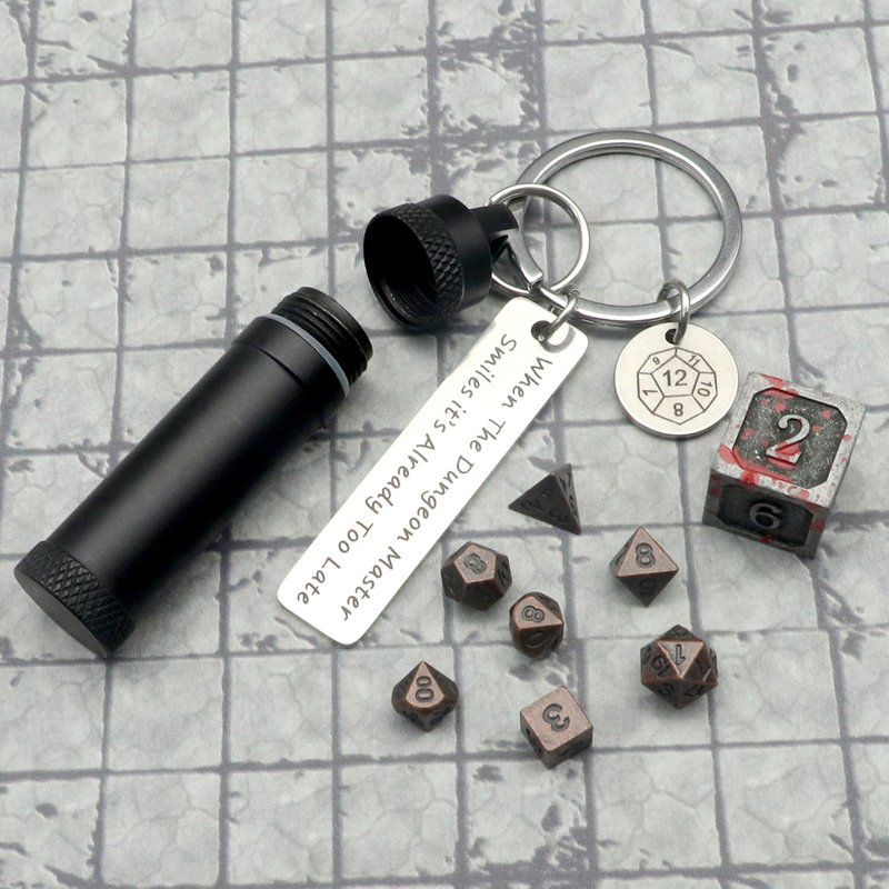 - 【Hefty Metal Dice Set DND Gift for DM】: The dice are made with solid zinc alloy for use of years. Together you will get a fun keychain made of quality stainless steel. Ready to see smiles from your DM? haha