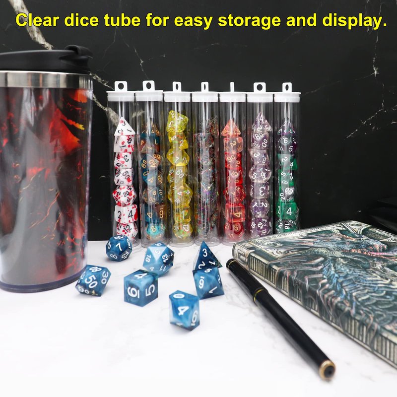 - [Extra Dice Display Case]: There will be a clear display tube that can stand on its own or be hang on the wall or rack. Showing off your beloved dice is now easy! No extra money spent on dice storaging.