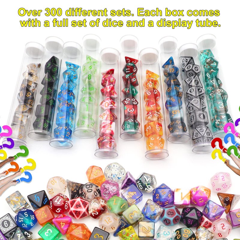 - [Fun Mystery Dice Set]: Like surprise? These blind dice box is made for you! Each mystery dice box will come with a random set of dice coming from more than three hundreds haxtec dice. The dnd dice can be of any styles you can imagine for surprise.