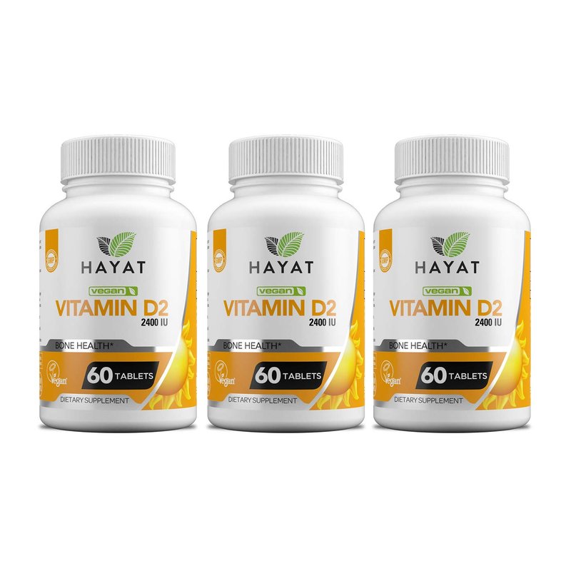 HAYAT Vitamins Vegan Natural Vitamin D 2400 IU, D2, Certified Halal (Pack of 3)