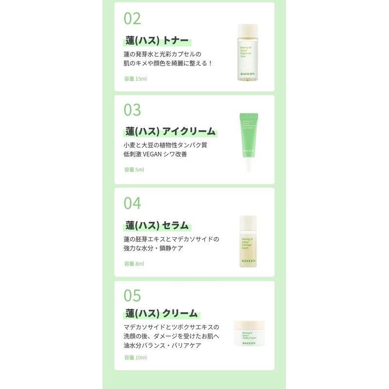 HAYEJIN Blessing of Sprout Calming Trial Kit | Korean Skin Care Set w/ Cleanser, Toner, Serum, Eye Cream & Face Cream | Face Care Kit | K Beauty Skin Care Kit (Pack of 5 Facial Skin Care Products)