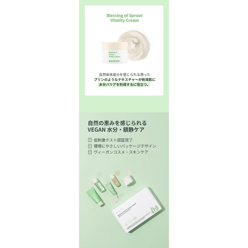 - CREAM'S NOURISHING BARRIER. Conclude with the HAYEJIN Blessing of Sprout Vitality Cream from our face skin care kit for women. Enriched with Madecassoside and Centella Asiatica Extract, this moisturizer face cream seals in the goodness to ensure your skin is deeply moisturized.