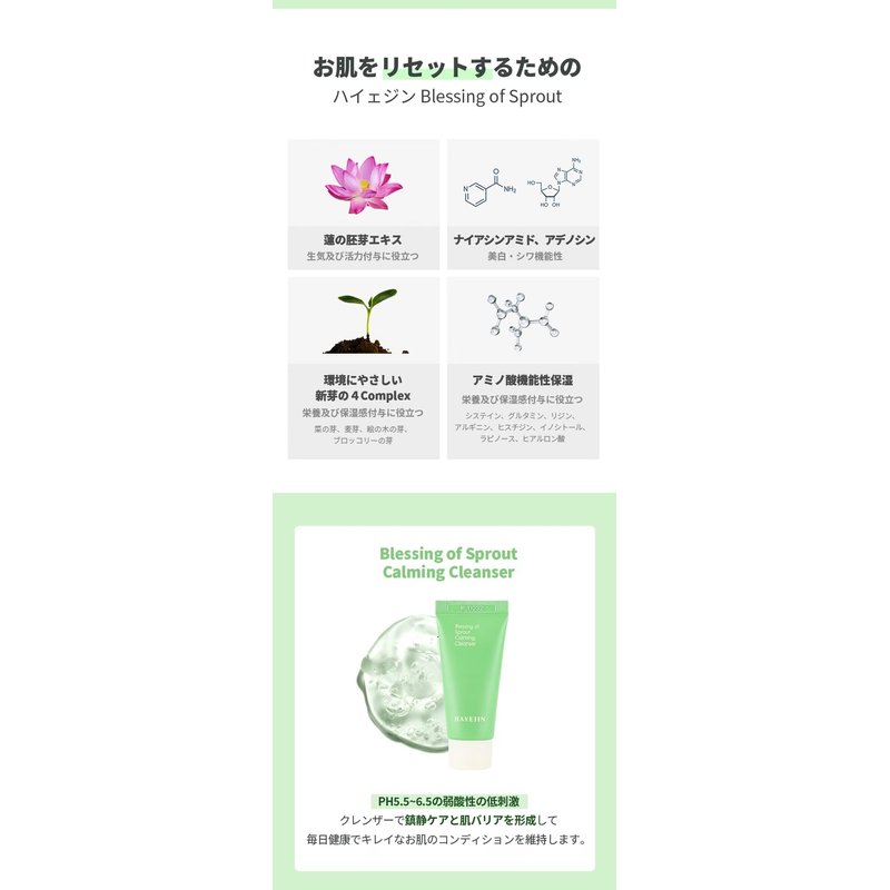 - RADIANT CLEANSING. Immerse yourself into the essence of Korean skin care with the Blessing of Sprout Calming Cleanser. This travel size face wash is enriched with Nelumbo Nucifera Germ Extract and delivers an invigorating Asian skincare cleansing experience for refreshed and revitalized skin.