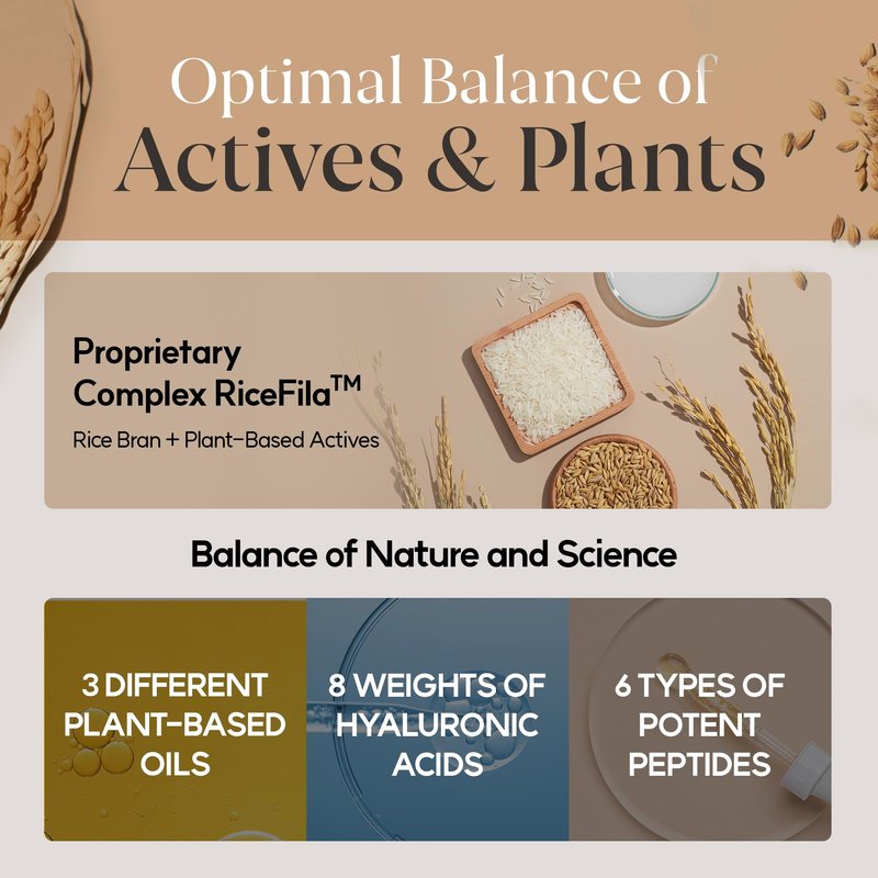 Immerse your skin in a luxurious blend of Rice Bran and 5 meticulously selected Hyaluronic Acids which culminate in a symphony of nourishment and vitality that your skin truly deserves.